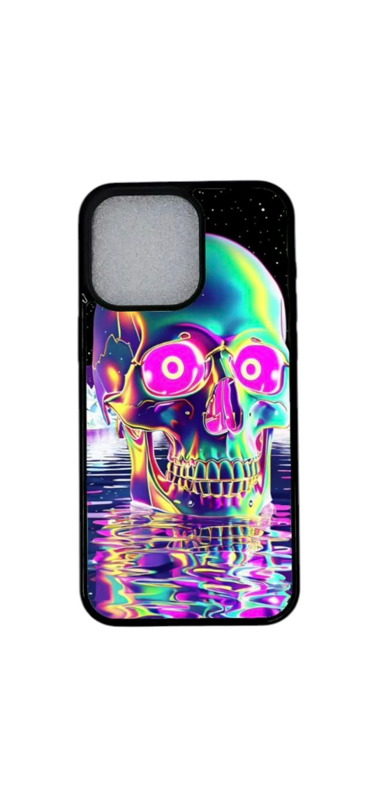 Kohtaa tuli ja kortit – iPhone 12 Pro Magneettinen Kuori – Neon Skull Jokeri