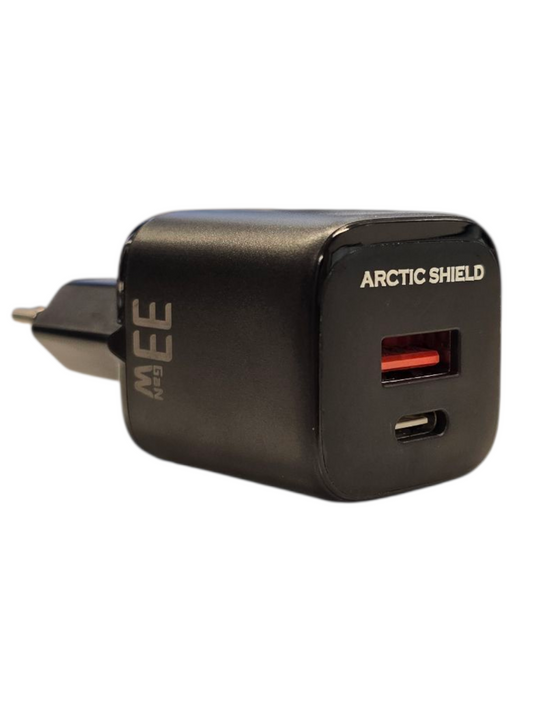 Arctic Shield 33W USB-C PD / QC Pikalaturi – Musta Seinälaturi